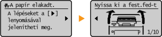 Amikor hiba lép fel, bizonyos esetekben a hiba elhárítására vonatkozó útmutatás jelenik meg a kijelzőn. A probléma megoldásához kövesse a kijelzőn látható utasításokat. Az alábbi ábrán például a papírelakadáskor megjelenő képernyő látható.