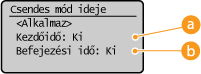 Adja meg a csendes üzemmódból való kilépés idejét. Beállításhoz válassza a <Be> lehetőséget, majd adja meg az időt.