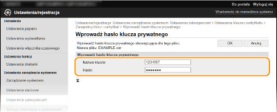 [Ustawienia klucza i certyfikatu] albo [Ustawienia certyfikatu CA].