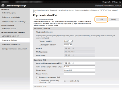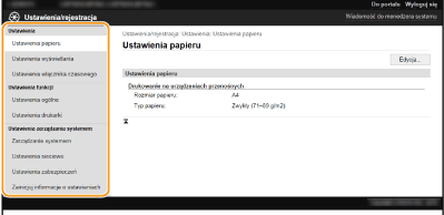 Za pomocą Zdalnego interfejsu użytkownika można zmieniać różne ustawienia urządzenia. Większość ustawień można konfigurować także w urządzeniu, ale niektóre z nich mogą zostać zmienione tylko za pomocą Zdalnego interfejsu użytkownika. W tej części opisano podstawowy przebieg procedury modyfikacji ustawień urządzenia przy użyciu Zdalnego interfejsu użytkownika.