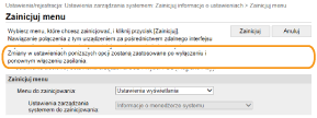 Aby uzyskać informacje o konieczności ponownego uruchomienia urządzenia, zapoznaj się z komunikatem na ekranie edycji.