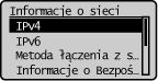 Umożliwia wyświetlenie ustawień sieciowych, np. ustawień adresu IP urządzenia, oraz stanu sieci, np. poprawności działania bezprzewodowej komunikacji LAN.