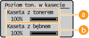Wyświetlona ilość pozostałego toneru w zasobniku z tonerem albo zespole bębna może być użyta tylko jako wskazówka i może różnić się od faktycznej ilości.