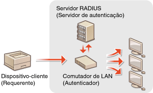 Os dados de autenticação são enviados e verificados por um servidor RADIUS, que permite ou rejeita a comunicação destinada à rede, dependendo do resultado da autenticação. Se a autenticação falhar, um comutador (ou um ponto de acesso) de LAN bloqueia o acesso proveniente do exterior da rede. A máquina pode estabelecer ligação a uma rede 802.1X como um dispositivo-cliente.