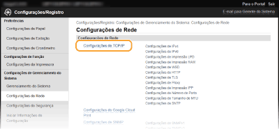 Clique em [Configurações/Registro] na página do portal.