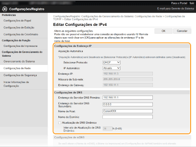 Pode alterar as diferentes definições da máquina utilizando a UI Remota. A maioria das definições também pode ser configurada na máquina, mas algumas definições só podem ser configuradas utilizando a UI Remota. Esta secção descreve o fluxo básico de alteração das definições da máquina utilizando a UI Remota.
