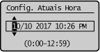 Pode alterar várias definições relacionadas com o visor, tais como a velocidade de deslocamento ou o idioma do visor: <Configurações de Exibição>