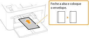 Coloque os envelopes de modo a que a extremidade com a aba fique virada para o lado esquerdo, conforme mostrado na imagem.