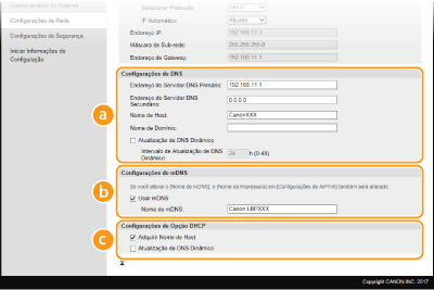 O DNS (Domain Name System) disponibiliza um serviço de resolução de nomes que associa um nome de anfitrião (ou domínio) a um endereço IP. Configure as definições de DNS, mDNS ou DHCP conforme necessário. Tenha em atenção que os procedimentos de configuração de DNS são diferentes para IPv4 e IPv6.