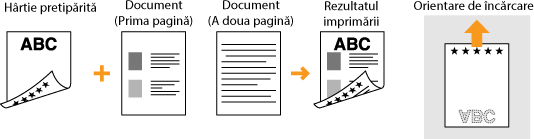 Această secţiune descrie în principal cum să încărcaţi hârtie pre-tipărită în direcţia şi orientarea corespunzătoare. Pentru o descriere a procedurii generale de încărcare a hârtiei în sertar, consultaţi Încărcarea hârtiei în sertar sau Încărcarea hârtiei în tava multifuncţională.