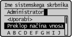 > in < > ne prikažeta na zaslonu, lahko na zaslonu izberete < > in pritisnete , da izbrišete vse znake, ki ste jih vnesli. |