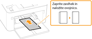 Preden kuverte vložite, poravnajte zavihke. Pazite tudi na pravilno usmerjenost kuvert in na tisto stran, ki bo natisnjena.