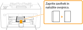 Kuverte naložite tako, da je rob z zavihkom obrnjen proti levi strani, kot kaže slika.