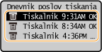 Če je možnost <Prikaz dnevnika poslov> nastavljena na <Izključeno>, si ne morete ogledati dnevnikov tiskanja. <Prikaz dnevnika poslov>