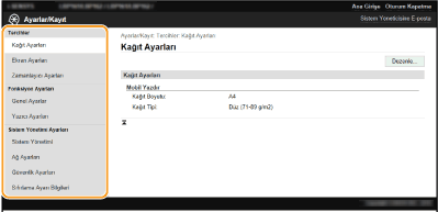 Bazı ayarları yalnızca, Sistem Yöneticisi Modu'nda oturum açtığınızda değiştirebilirsiniz.