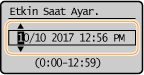 Geçerli tarih ve saati ayarlamadan önce <Zaman Dilimi> öğesini ayarlayın. <Zaman Dilimi> ayarı değiştirilirse, geçerli tarih ve saat ayarı da uygun şekilde değişir.