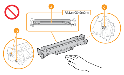 ), elektrik bağlantılarına ( ) veya toner kartuşunun belleğine ( ) dokunmayın.![]() Gerekmedikçe, toner kartuşunu paketleme kutusundan veya bu makineden çıkarmayın.