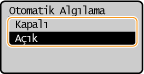 <Otomatik Algılama> öğesini seçin.