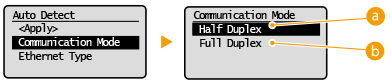select the communication mode.![]() <Half Duplex>Alternately sends and receives communication data. Select when the machine is connected to a networking device using half duplex.