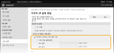 이 확인란을 선택하는 경우, 리모트 UI에 액세스하기 위해서는 PIN을 입력해야 합니다.