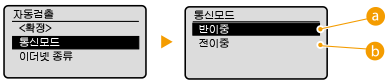 통신 모드를 선택합니다.![]() <반이중>통신 데이터를 교대로 보내고 받습니다. 기기가 반이중을 사용하여 네트워킹 장치에 연결된 경우에 선택합니다.