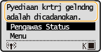 Mesin ini memaparkan mesej apabila jumlah baki di dalam kartrij gelendong adalah rendah. Ambil perhatian bahawa kualiti cetakan boleh merosot jika anda teruskan mencetak tanpa menyelesaikan isu ini. Anda boleh menyemak jumlah baki dalam kartrij gelendong pada paparan (