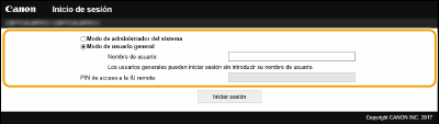 Si está establecido [PIN de acceso a la IU remota], introduzca el PIN. Configuración de un PIN para la IU remota