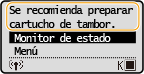 Este mensaje le informa de que muy pronto deberá sustituir el cartucho de tambor. Asegúrese de contar con un cartucho de tambor de sustitución. Sustituya el cartucho de tambor si visualiza este mensaje antes de comenzar a imprimir un trabajo grande.