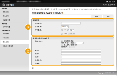 由于本机上生成的证书没有 CA 签名,因此根据与之通信的设备,可能会发生通信错误。要让证书颁发机构颁发带 CA 签名的证书,需要获得 CSR(证书签名请求)的数据,管理员可以从远程用户界面生成此数据。颁发证书时,会将其注册在密钥中,并生成 CSR。