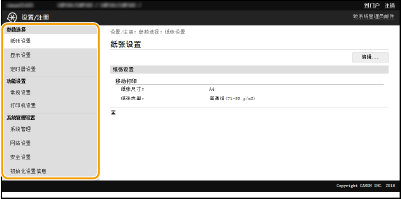 可通过使用远程用户界面更改多项机器设置。大多数设置也可在本机上设置,但是某些设置只可使用远程用户界面设置。本节介绍使用远程用户界面更改本机设置的基本流程。