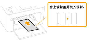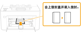 将信封 Monarch、No. 10 (COM10)、DL 或 C5 纵向(短边朝向本机)装入,非粘合面(正面)向上。不能在信封的背面打印。