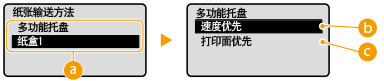 <多功能托盘> <速度优先>  <打印面优先> <纸盒1> <速度优先>  <打印面优先> |