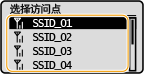 可以搜索可用于连接的无线路由器(或访问点),并从本机的显示屏中选择其中之一。对于网络密钥,请输入 WEP 密钥或 PSK。选择无线路由器之前,请检查和记录所需设置信息,包括 SSID 和网络密钥 (