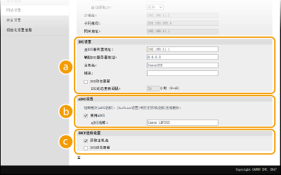 被 Bonjour 采用,mDNS(多路传送 DNS)是用于不通过 DNS 将主机名与 IP 地址相关联的协议。选择此复选框启用 mDNS,然后在 [mDNS名称] 文本框中输入 mDNS 名称。