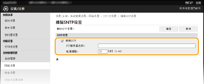 选择 [使用SNTP] 复选框,并指定所需设置。