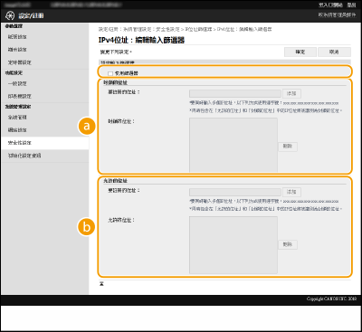在 [要註冊的位址] 文字框中輸入 IP 位址(或 IP 位址的範圍),然後按一下 [添加]。