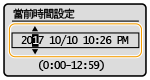 如果超過指定時間未按下按鍵,畫面和設定將初始化以顯示預設畫面(自動重設)。指定執行自動重設的間隔。在以下情況不會執行自動重設: