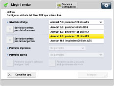 Si seleccioneu [Acrobat 10.0 i equivalent], apareix [Acrobat 10.0 i equivalent/256 bits AES] quan seleccioneu el nivell de xifratge.