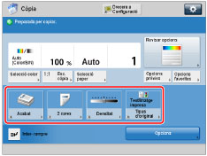 Podeu desar modes a les tecles de drecera que apareixen a la pantalla de còpia. Podeu desar fins a cinc botons d'[Opcions] i [Opcions favorites].