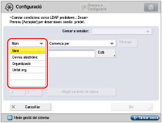 Si desactiveu [Cerca automàtica en usar servidor LDAP], a la pantalla de la llista de destinacions no apareix res fins que no realitzeu una cerca.