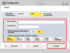 Seleccioneu un element per a <Versió de servidor LDAP i codis de caràcters> → premeu [Bé].