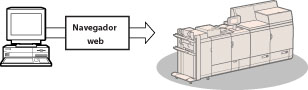 Des del navegador web de l'ordinador, podeu controlar funcions com confirmar l'estat de l'equip, les operacions amb treballs, i les instruccions d'impressió per a dades llegides i desades.