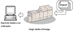 La funció Lectura en xarxa permet utilitzar aquest equip com un escàner convencional. Podeu llegir un document amb l'equip i llegir les dades en una aplicació que utilitzeu a l'ordinador. Podeu llegir imatges de mida A3 amb una resolució de 600 x 600 ppp.