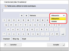 o per desplaçar el cursor → premeu [Retrocés] per esborrar els caràcters → introduïu els caràcters correctes.Per esborrar tots els caràcters introduïts, premeu