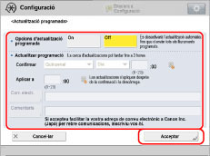 (tecles numèriques). L'actualització del microprogramari s'aplicarà a l'hora especificada dintre d'un termini de 24 hores des que hagi finalitzat la descàrrega.|