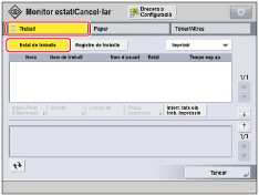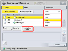 A la Llista de treballs d'enviament s'imprimeix una llista amb les transmissions de fax, correu electrònic, I-fax, servidor de fitxers i bústia.