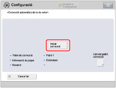 Assegureu-vos que realitzeu l'operació "Ajust automàtic de gradació (Ajust complet)" per corregir les opcions de gradació i densitat abans d'iniciar l'operació "Correcció autom. to color" per corregir les opcions de color. Per obtenir més informació sobre l'ajust automàtic de gradació (Ajust complet), vegeu "Ajust automàtic de la gradació:".