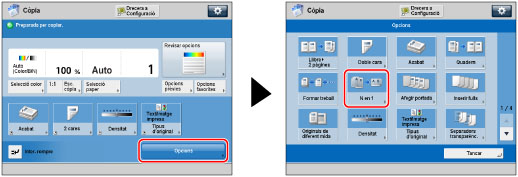 Si voleu portar a terme la còpia a doble cara, premeu [Opcions de doble cara] → seleccioneu el tipus de còpia a doble cara → premeu [Bé].