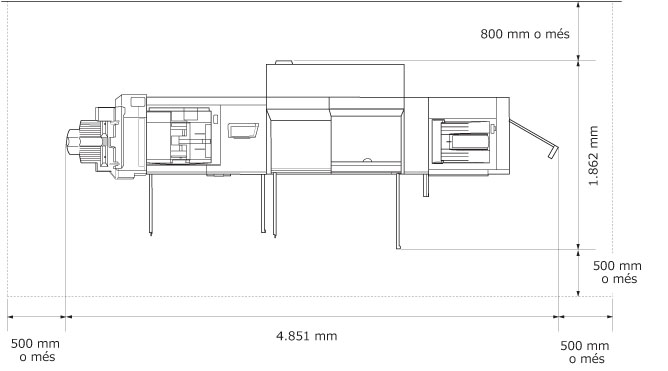 De la mateixa manera, en instal·lar els accessoris Two-Knife Booklet Trimmer-A1, Booklet Trimmer-D1, Finisher-AN1, Saddle Finisher-AN2, Paper Folding Unit-J1, Perfect Binder-E1, Document Insertion Unit-N1, POD Deck-D1, Secondary POD Deck-D1, POD Deck Lite-C1, Multi Function Professional Puncher-A1 i High Capacity Stacker-H1, cal que respecteu una distància de 5 mm entre cadascun quan els connecteu.