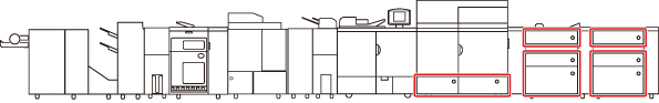 La mida de paper per al dipòsit de paper de l'equip i POD Deck-D1/Secondary POD Deck-D1 es pot canviar utilitzant el mateix procediment.